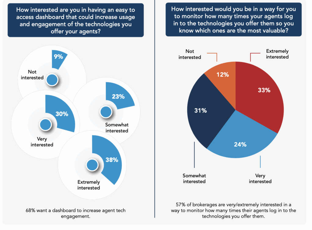 The study also found that 57% of brokers are very or extremely interested in a way to monitor how often agents log in to the technologies provided. And 68% want a dashboard that increases usage and provides better visibility into engagement. That level of interest speaks to a growing demand for smarter systems that help brokers connect the dots between what they’re paying for and what’s helping agents succeed.